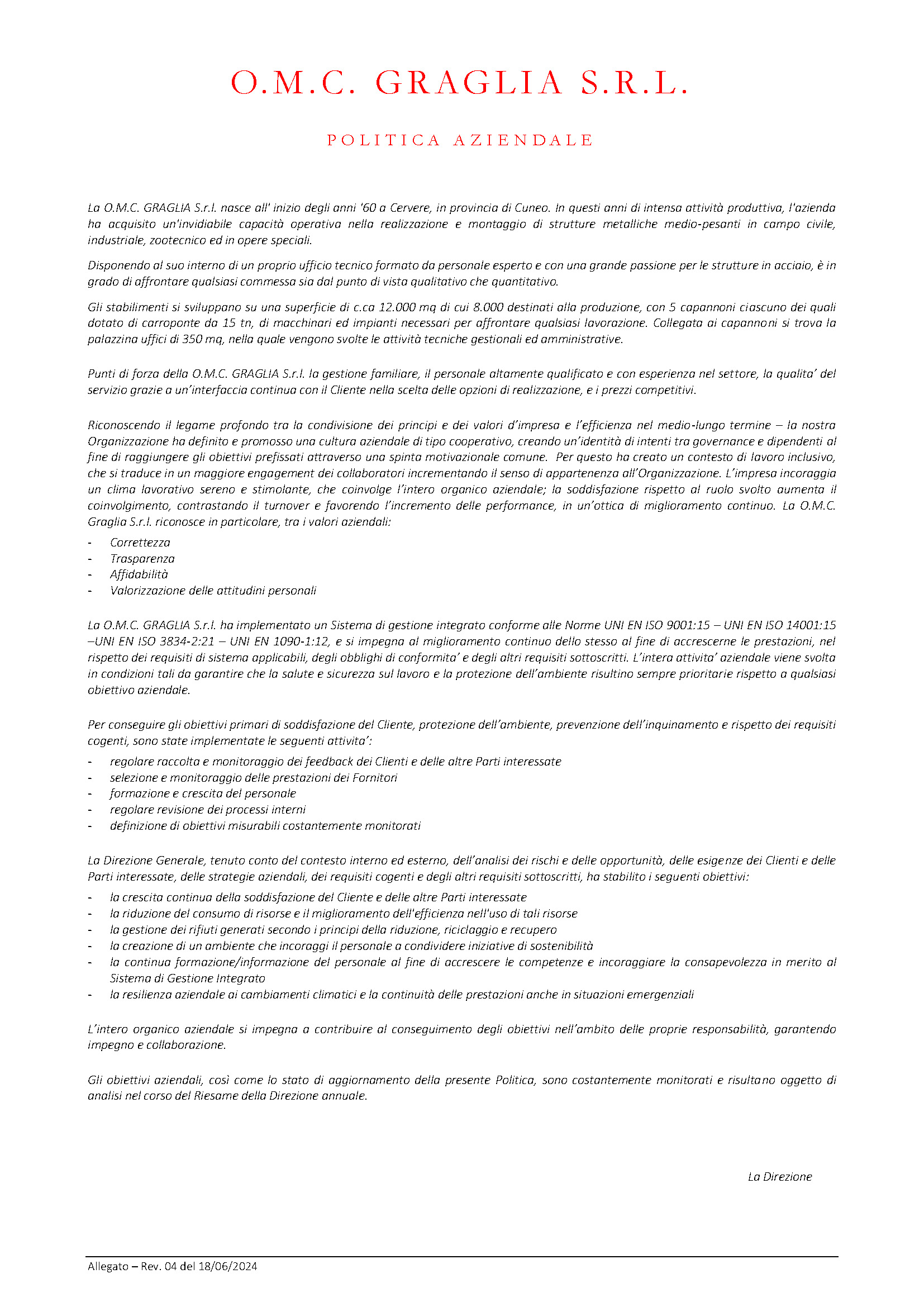 La qualità è un tema molto importante per l’ OMC GRAGLIA, tanto che ha ottenuto, dai più importanti enti, le seguenti certificazioni: